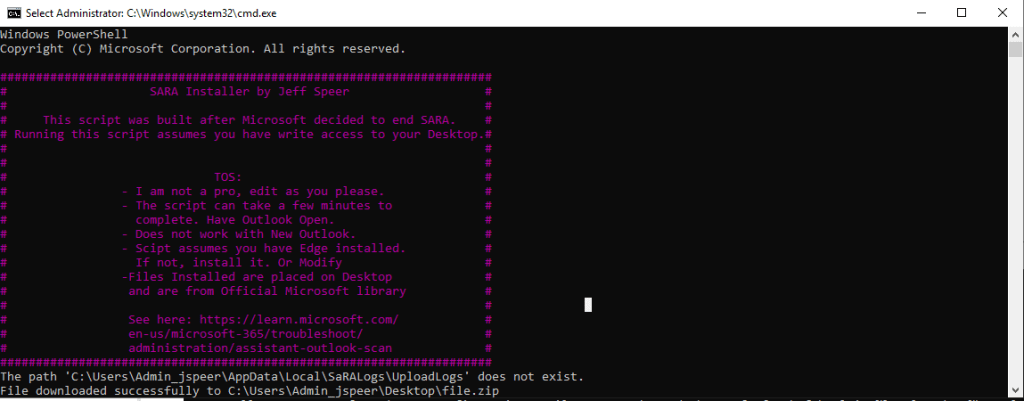 Feel free to modify as needed and let me know in the comments below if this worked for you or helped you in any way shape or form! I will continue to research the Enterprise version of SARA to see what else we can extract and use good ole PowerShell for to replicate. Again, any feedback is greatly appreciated! Happy Outlooking for now.