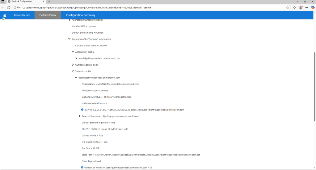 That being said, I was able to build a PowerShell script that generates and extracts it for you without even needing to install any troubleshooter or manuipulate, well, anything at all in this case. It does it all for you and populates the report in your default browser just like goold old times. It takes advantage of the Entireprise version of Support and Recovery Assistant by ultimately invoking the scenario called ExpertExperienceAdminTask.